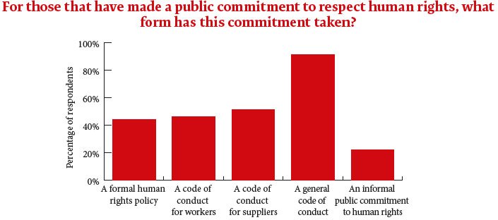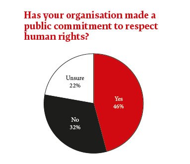 Anyone doubting the rapid spread of such issues for GCs only has to glance at some headline findings of our survey, drawn from the responses of 275 senior in-house counsel across a range of industry sectors. Nearly half of respondents’ organisations (46%) have made public commitments to respecting human rights. Where such human rights commitments have been made they most commonly refer to either national laws or the UN guiding principles.