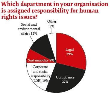Fifty-one percent of in-house counsel report changes to their supply chain management to support human rights, while 46% have already encountered human rights clauses in commercial contracts. Legal teams are currently the most commonly assigned to take overall responsibility for human rights issues, cited by 29%, against 27% for compliance and 19% for corporate social responsibility (CSR) teams.