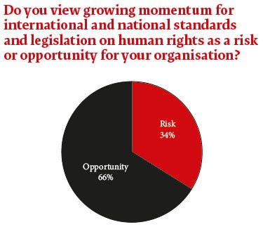 As wrenching as this shift in mindset is for lawyers, our research suggests it is a challenge the GC community in the main want to address. Asked how they view the global momentum in human rights standards, 34% saw it as a risk. The proportion that saw it as an opportunity? Sixty-six percent.