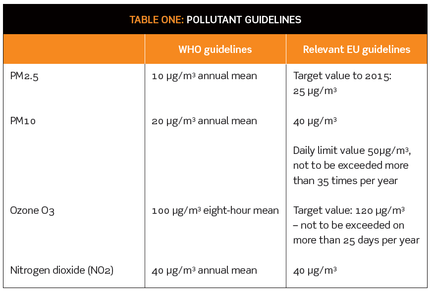 Despite the internationally authoritative WHO guidelines, it is clear that EU limits for the same pollutants have not caught up with WHO limits, as shown in table one.